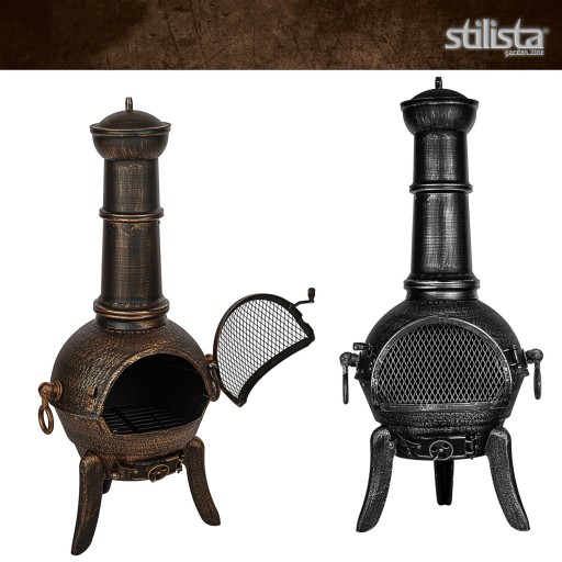 Nasz piec ogrodowy to prawdziwa atrakcja ogrodu, werandy i tarasu. O każdej porze roku stworzy nam miłą atmosferę, a jego ponadczasowy design i zdobienia będą cieszyć oko. Przez otwartą kratkę w palenisku mamy piękny widok na trzaskający ogień. Ciepło bijące od tego tarasowego kominka odczujemy szczególnie w długie jesienne wieczory. Palenisko wykonane jest z najwyższą dbałością o szczegóły z żeliwa i stali. Wsparte jest na trzech pięknie zdobionych nogach, które dodają mu charakteru.