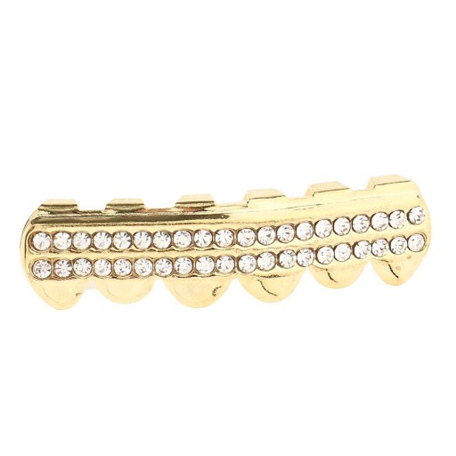3xDouble Zircon Drill Top Bottom Grill Hip Hop Mouth Teeth Grills Caps Gold