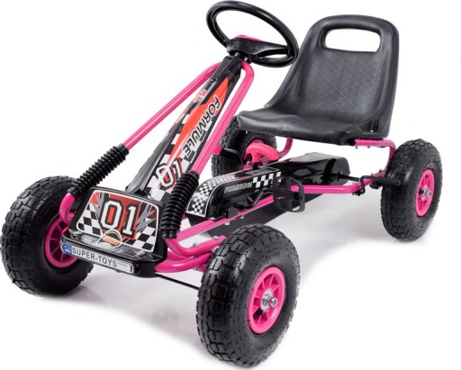 WYGODNY DUŻY GOKART NA PEDAŁY - RÓŻOWO - CZARNY