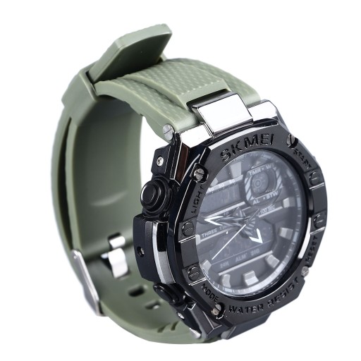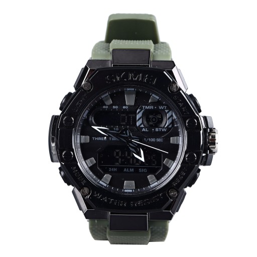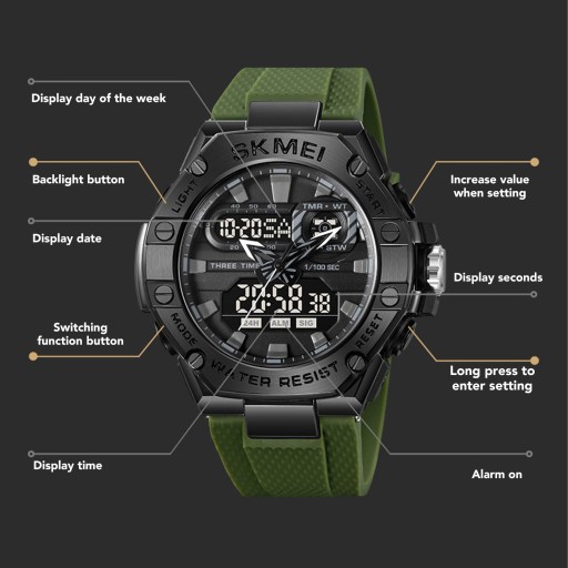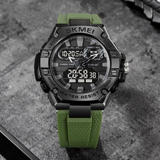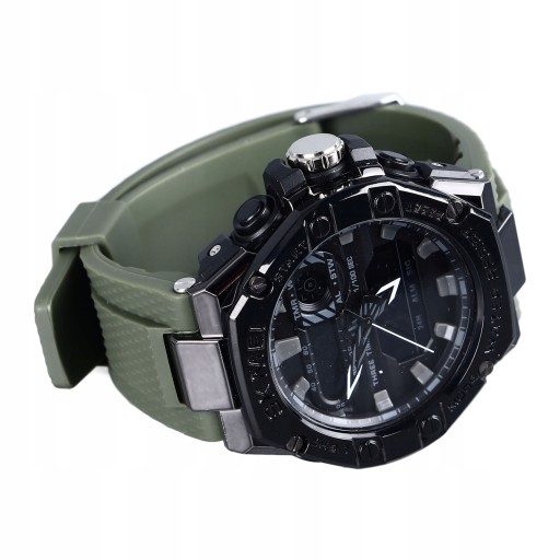 Zegarek elektryczny z podwójnym wyświetlaczem 50 m Wodoodporny pomiar czasu Odporny na wstrząsy Wielofunkcyjny męski analogowy zegarek sportowy LED dla mężczyzn Zielony OD