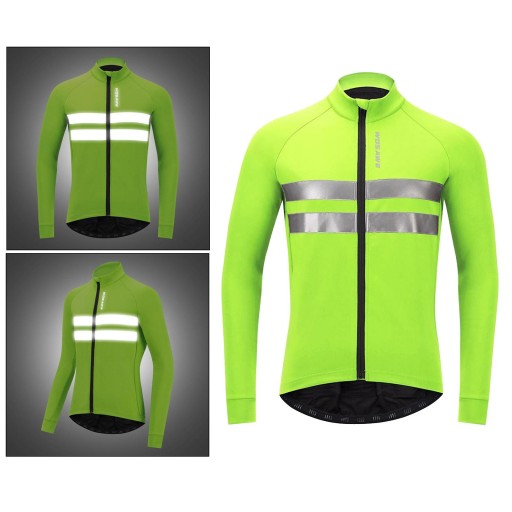 Ta wysokiej jakości kurtka rowerowa z dżersejową kurtką przeciwwiatrową, wykonana z poliestru i polarowej podszewki, jest wygodna, termiczna, wiatroodporna i oddychająca