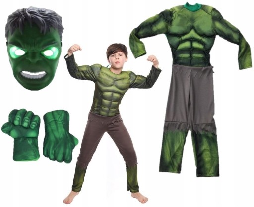 STRÓJ PRZEBRANIE KOSTIUM DLA CHŁOPCÓW HULK W ZESTAWIE Z MASKĄ LED I RĘKAWICAMI