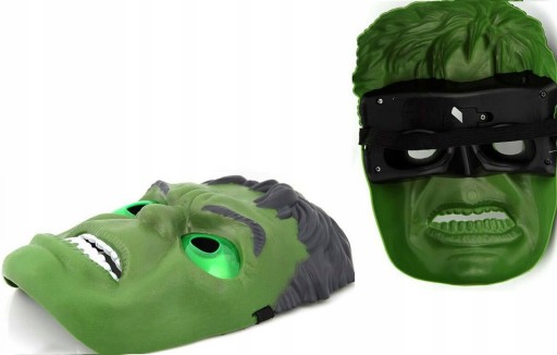Maska do przebrania Hulka została wyposażona w diody LED w okolicy oczu. Po naciśnięciu przycisku oczy bohatera świecą w kolorach niebieskim i czerwonym. Całość wykonana z lekkiego i wyprofilowanego plastiku wyposażona dodatkowe w otwory, umożliwiają swobodne oddychanie.