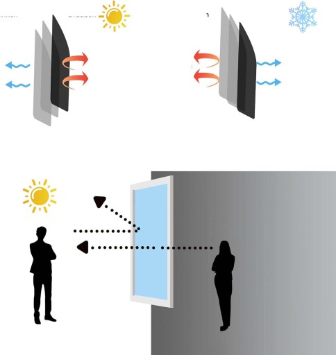- Uwaga: jeśli światło wewnętrzne jest jaśniejsze niż światło zewnętrzne, efekt lustra będzie odwrotny, dlatego należy zwrócić uwagę, aby chronić prywatność w nocy.