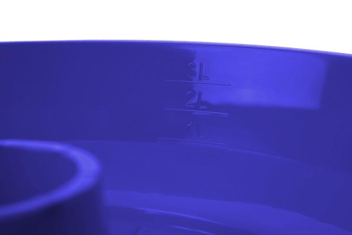 - Na wewnętrznej ściance umieszona podziałka z ilością litrów zapełniających podkarmiaczkę.
