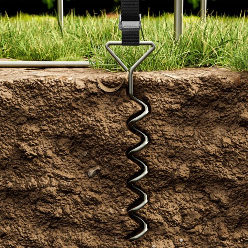 ✅ Wysoka jakość: Dzięki zastosowaniu ocynkowanej stali kotwy i paski pozostają odporne nawet na wiatr i niepogodę. 5 spiralnych zwojów i solidne metalowe klamry utrzymują każdy przedmiot na zewnątrz mocno w ziemi.