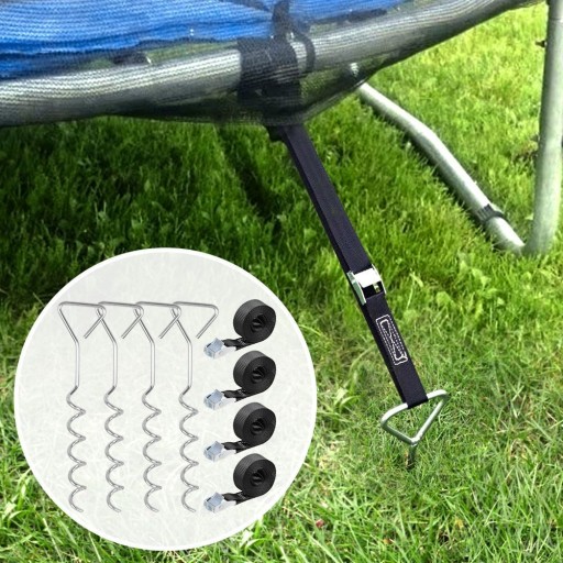 ❤️ Co otrzymasz: zestaw do mocowania składający się z 4 spiralnych kotwic do podłoża i 4 pasków poliestrowych. Nadaje się nie tylko do trampoliny, ale również do huśtawek, szklarni, namiotów, zjeżdżalni dla dzieci, wież do zabawy itp.