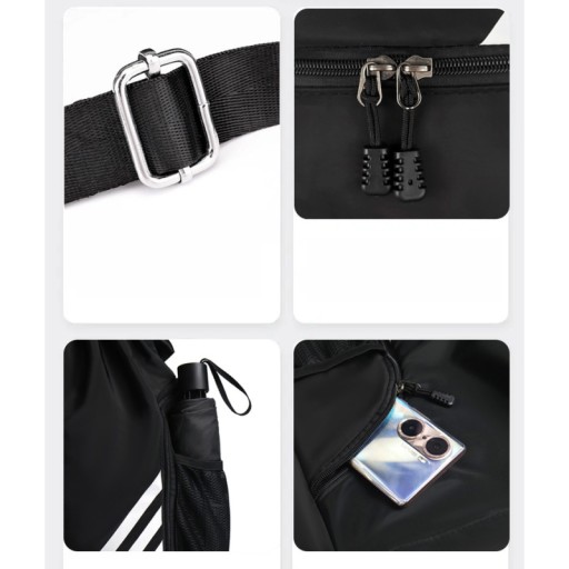 ✅boczne kieszenie siatkowe z elastycznymi paskami po obu stronach plecaka na torbę sportową pomieszczą butelki z wodą i parasole; przednia kieszeń może przechowywać chusteczki i przybory toaletowe; na dole znajduje się niezależna komora na buty; znajduje się dodatkowa wewnętrzna kieszeń zapinana na zamek w torbie linowej.Wystarczająco duża, aby pomieścić drobne przedmioty wartościowe, takie jak zegarki sportowe, portfele itp. aby uniknąć kieszonkowców.