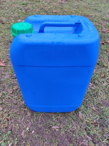 Pojemniki mogą być zakurzone w związku z ich składowaniem i posiadać rysy, są puste i wstępnie przepłukane ale wymagają wypłukania wodą przed pierwszym użyciem. Pojemnik nie nadaje się do wody pitnej- jedynie gospodarczej (do wody pitnej posiadam pojemniki 10l wystawione na innych aukcjach).