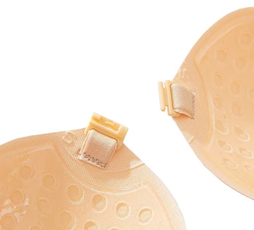 - Po naklejeniu miseczek należy zapiąć biustonosz. Piersi zostaną ściągnięte do środka i podniesione.