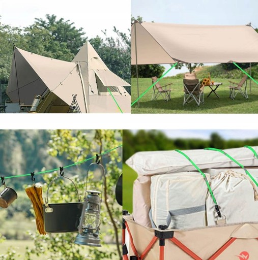- ✔️ - 【Rozmiar】: Każda lina ma 4 metry długości i średnicę 4 mm. Każda lina może utrzymać do 200 kg. W zestawie 10 lin namiotowych