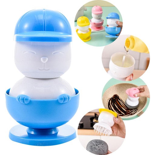 [Łatwy w użyciu]: szczotka do szorowania naczyń kuchennych. Delikatnie naciśnij gumowy przycisk na górze, aby uwolnić płyn do naczyń. Oszczędzaj proces pobierania płynu mydlanego, upraszczaj proces pracy i oszczędzaj czas.