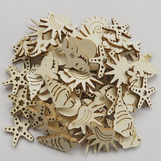 50 SZTUK KARTONOWE DREWNIANE ELEMENTY ZWIERZĘTA MORSKICH RZEŹBY RZEMIOSŁO ZDOBIEŃ WO