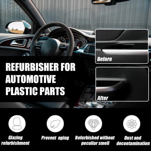 [Szerokie zastosowanie]: odświeżanie części nadaje się do kokpitów samochodowych, pedałów samochodowych, paneli drzwi samochodowych, siedzeń samochodowych, gumowych pasków samochodowych, brwi kół samochodowych itp.