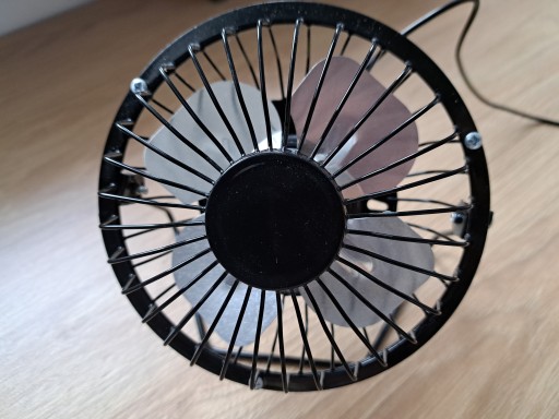 mały, metalowy, czarny, biurkowy, usb, stan idealny, wymiary 15x18 cm