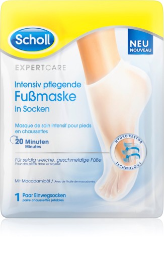 Edvabicznie delikatne stopy zapewniają w ciągu zaledwie 20 minut głęboko odżywczą maskę do stóp Scholl Expert Care. Bardzo łatwo się nakłada i pomimo zawartości oleju makadamia lub masła shea w ogóle nie natłuszcza. Nawilża suchą skórę, pozostawiając ją na długo elastyczną i miękką w dotyku.