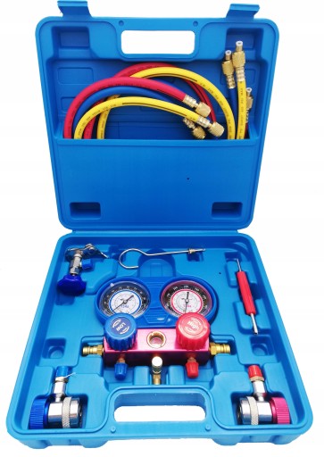 Kompletny zestaw do diagnostyki i napełniania układów klimatyzacji wykorzystujących czynniki chłodnicze R22 lub R134A. Profesjonalny zestaw badania szczelności i napełniania klimatyzacji jest idealnym rozwiązaniem do samodzielnego sprawdzania systemów klimatyzacyjnych. Zestaw wyposażony w szybkozłączki do ochrony i bezpieczeństwa czynnika chłodniczego, z wbudowanym wziernikiem do monitorowania stanu i przepływu czynnika chłodniczego.