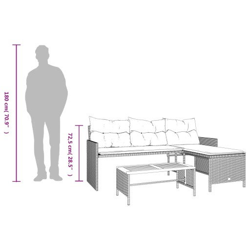 Ta sofa wypoczynkowa w kształcie litery L będzie fantastycznym dodatkiem do Twojego ogrodu, tarasu lub patio. Stworzy wygodną i zachęcającą przestrzeń do spotkań z rodziną i przyjaciółmi oraz relaksu na świeżym powietrzu. Trwały materiał: rattan PE, znany również jako polirattan, to trwałe i łatwe w utrzymaniu tworzywo sztuczne, które wyglądem przypomina naturalny rattan. Jest lekki, łatwy w czyszczeniu i powszechnie stosowany do wyrobu produktów przeznaczonych do użytku na zewnątrz, ze względu na swoją trwałość i odporność na czynniki atmosferyczne.Wygoda siedzenia: te meble ogrodowe wraz z grubo wyściełanymi poduszkami oferują wygodę siedzenia.Zdejmowane poszewki z możliwością prania: poduszki siedziska posiadają zdejmowane pokrowce, które można prać. Solidna i stabilna rama: malowana proszkowo rama ze stali gwarantuje wytrzymałość i stabilność mebla w codziennym użytkowaniu na zewnątrz.Stabilny i łatwy w czyszczeniu blat: ten stolik ogrodowy ma blat z drewna akacji, który jest solidny, trwały i łatwy do wyczyszczenia wilgotną ściereczką. Warto wiedzieć:Aby utrzymać meble ogrodowe w dobrej kondycji, zalecamy zabezpieczenie ich wodoszczelnym pokrowcem.