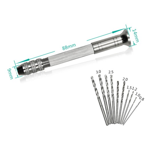 ✅zestaw wierteł: wiertarka ręczna z 10 sztukami wierteł: 0,8/1,0/1,2/1,5/2,0/2,5/3,0mm