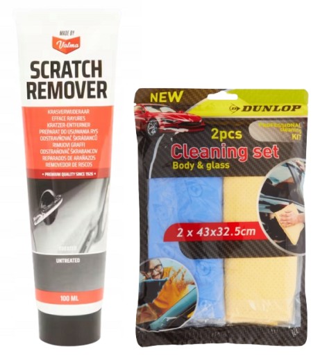 Zestaw 2 produktów: środek pasta do usuwania zarysowań polerowania karoserii VALMA 100 ml + ściereczki do polerowania DUNLOP 2 szt.
