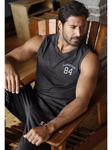 Dwupak koszulek męskich Poro w sportowym wzornictwie z szerokimi wycięciami na ramionach i okrągłym dekoltem. Prosty krój, łatwy w praniu. Doskonała propozycja na letnie dni i aktywności sportowe.