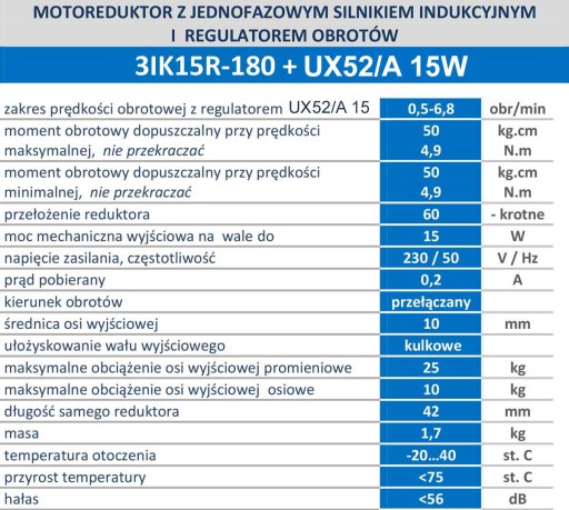 Motoreduktor z silnikiem jednofazowym 3IK15R-180 i regulatorem US52/M-15W
