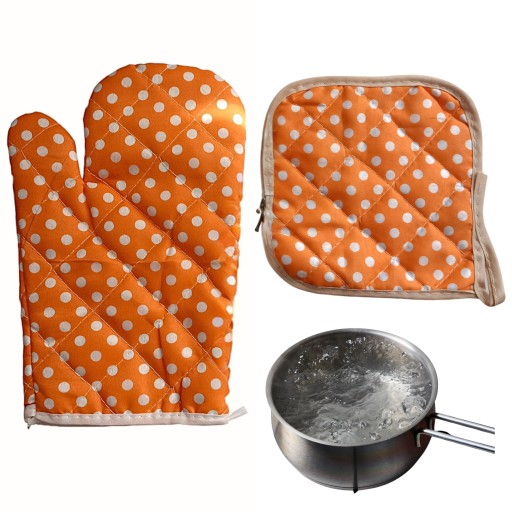 Rękawica ochroni Twoje dłonie w zetknięciu z gorącymi naczyniami, a podkładka zabezpieczy blaty. Możesz postawić gorący garnek bezpośrednio na podkładce bez ryzyka pozostawienia śladów czy odparzeń.