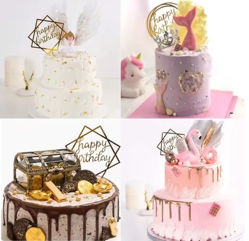 ТОППЕР НА ДЕНЬ РОЖДЕНИЯ с акриловой надписью «С Днем Рождения» ЗОЛОТОЙ ТОППЕР