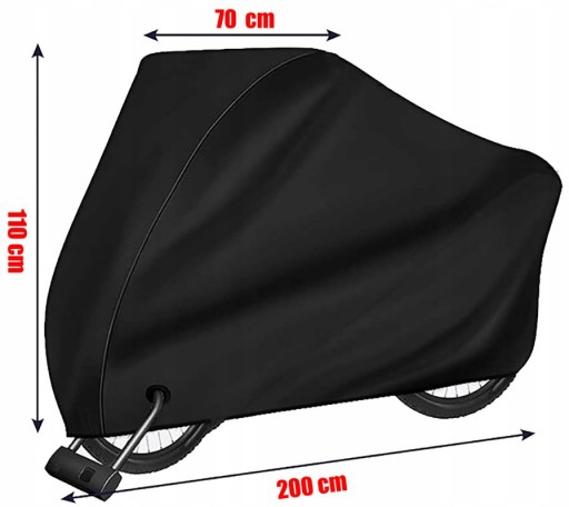 Pokrowiec jest dostosowany do rowerów od 26 do 28 cali, ale można także zmieścić dwa rowery jednocześnie, skuter czy motor.