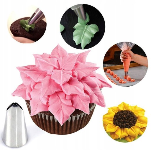 PRZYDATNE AKCESORIA: Użyj 3 skrobaków, aby wygładzić lukier po bokach i na górze oraz wyrzeźbić projekty. Użyj 2 łączników do wymiany końcówek bez wymiany rękawów do wyciskania. Użyj szczoteczki do czyszczenia, aby wyczyścić wąskie wierzchołki końcówek. Pióro ozdobne Pasutewel pomaga w pisaniu, dekorowaniu tak samo, jak zwykłym piórem. Użyj gwoździa do kwiatów z końcówką płatka Pasutewela do zrobienia róż. Użyj nożyczek do usuwania kwiatów, aby przenieść kwiat z gwoździa do ciasta