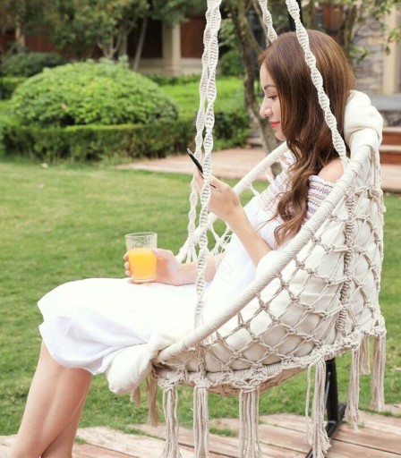 Ciesz się relaksem i wygodą dzięki naszej nowoczesnej i stylowej huśtawce ogrodowej w stylu boho z miękką wygodną poduszką w rozmiarze XXL!