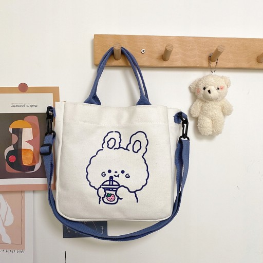 Modna damska torba na ramię nowa prosta modna płócienna torebka uliczna urocza torba studencka z królikiem --