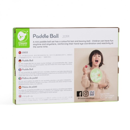 - Paddle Ball od marki CLASSIC WORLD to urocza zabawka sportowa z uroczą paletką i sprężystą piłką. Dzieci mogą bawić się w dowolnym miejscu i czasie, wzmacniać koordynację i reaktywność ręka-oko, a także budować zdrowe ciało.