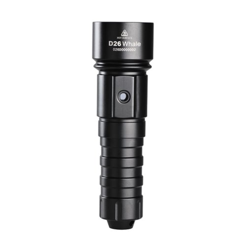 Jako profesjonalna latarka do nurkowania, XTAR D26 wykorzystuje najnowszą, najwyższej klasy diodę CREE XM-L2 U3 o max. 1100lm. Doskonała funkcja uszczelniania zapewnia głębokość nurkowania do 100 metrów. Posiada tryby do wyboru: High-Turbo-Mid-Low. Wbudowany wskaźnik zasilania, informuje na bieżąco o stanie naładowania akumulatora. Przystosowana do akumulatorów o dużej pojemności 18650, 18700 lub 26650 z PCM, latarka pozwala na długi czas nurkowania. Korpus wykonany ze stali nierdzewnej posiada perforowaną powierzchnię z trudnościeralną powłoką anodową co zapewnia dobry i pewny uchwyt. Aby zapewnić dobry kontakt elektryczny, styki akumulatora wykonane są z materiałów przeciwutleniających i dodatkowo pozłacane. Zabezpieczenie przed nieprawidłową biegunowością akumulatora, regulacja stabilizująca strumień świetlny, zabezpieczenie przed toczeniem, zaczep do smyczy i włącznik taktyczny z funkcją przełączania trybów pracy, podkreślają tylko profesjonalne podejście producenta do swoich produktów. Dostępna jest również wersja z ciepłą barwą światła, tutaj. Stosując do zasilania odpowiedni akumulator 26650 z zabezpieczeniem PCM, o pojemności 6000mAh, uzyskaliśmy czas świecenia 3,5 godziny w najmocniejszym trybie Turbo - 1100 lumenów.