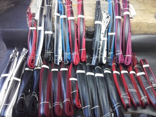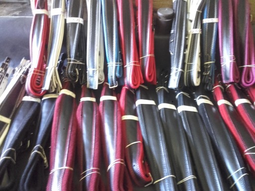 Mam do zaoferowania pasy skórzane do wszelkich rozmiarów akordeonów . Pasy są skórzane z grubych skór w środku stosujemy gruby filc z dodatkiem anty potowym to znaczy że paski nie będą wchłaniały potu , sprzączki dajemy wszystkie metalowe nie jakieś odlewy co nadaje nam moc pasów śmiało można wieszać ciężkie akordeony. Szyjemy pasy w sześciu kolorach podbicia biały, czarny , czerwony , bordowy , zielony , niebieski ,( zaznaczam używamy materiałów które nie farbują ) jak i również w dwóch szerokościach, standardowy komplet to około 5 cm szerokości taki komplet kosztuje 110 zł, komplet szeroki to około 7.5 cm koszt 150 zł. Oczywiście komplet to znaczy szelki plus pas basowy Pasy są przeszywane podwójną grubą nicią co nadaje większe mocy . Jak już wcześniej wspominałem szyjemy pasy na miejscu nie żadne pośrednictwo czy jakiekolwiek chinczyki .