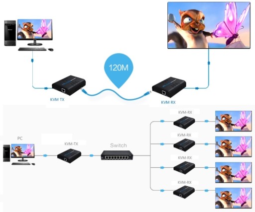 - Extend sygnału HDMI do 120 metrów za pośrednictwem pojedynczego kabla sieciowego