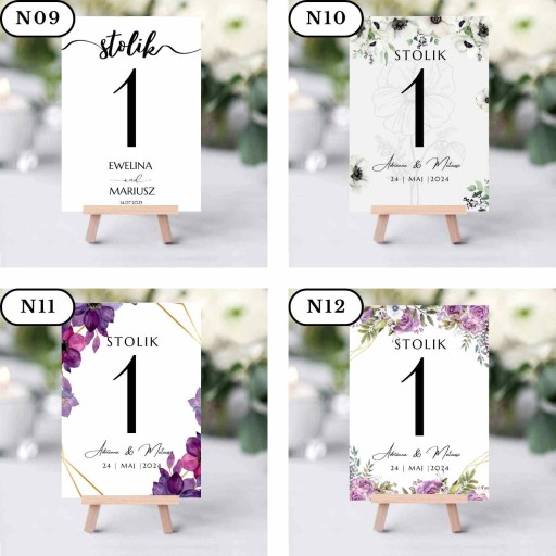 NUMERKI NA STÓŁ WESELNY NUMERY NA STOŁY STOLIKI ZE STOJAKIEM WESELE - WZORY