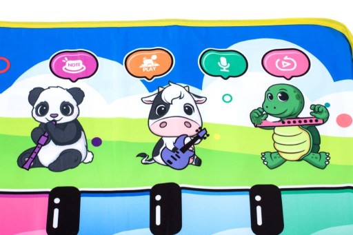 - Muzyczna mata interaktywna z nagrywaniem. Gwarantuje dziecku aktywną zabawę z dźwiękiem. Mata posiada 7 stopniową regulację głośności. Zabawa rozwinie poczucie rytmu, dotyku i czucia. Zasilanie: 3x AA (brak w zestawie). Wym. maty: 109,5x37,5cm.