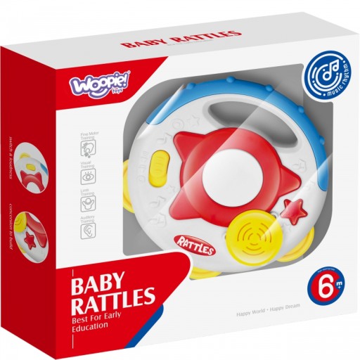 - Interaktywny tamburyn dla najmłodszych od marki WOOPIE to zabawka, która z pewnością wprowadzi rytm do codziennej zabawy Twojego dziecka! Wykonany z 100% nietoksycznych materiałów, ten bezpieczny instrument muzyczny zapewnia interaktywną zabawę, której nie można przegapić. Zabawka posiada przyciski, które, gdy naciśnięte, uruchamiają dźwięki. Te interaktywne funkcje pomogą Twojemu dziecku rozwijać zdolności motoryczne i rytmiczne, jednocześnie zapewniając godziny zabawy. Kolorowe elementy tamburyna także stymulują zmysł wzroku dziecka, ucząc go rozpoznawania różnych kolorów i kształtów. Zabawka jest nie tylko edukacyjna, ale i bawi, dzięki czemu Twoje dziecko z chęcią będzie do niej wracać.