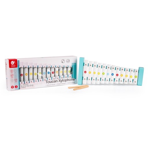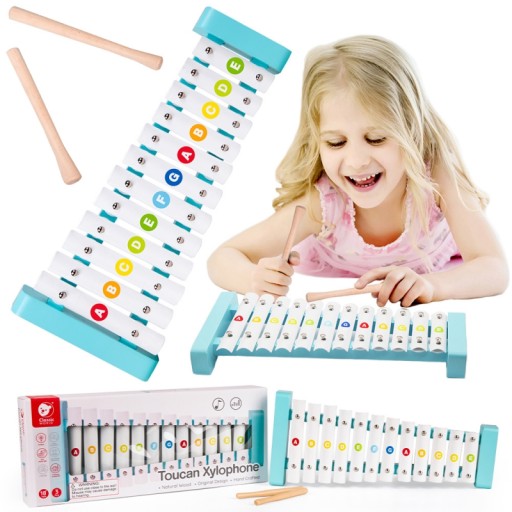 - - Zabawka posiada 12 stopniową skalę tonów. W zestawie dołączone są dwie drewniane pałeczki.