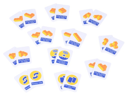 - Zasady gry:Grać można na dwa sposoby: gracze układają wybrane przez siebie klocki na balansującą platformę lub, w wersji trudniejszej układają klocki zgodnie ze wskazówkami z wylosowanej karty. Obie wersje są niezwykle emocjonujące i zapewnią wiele wrażeń!