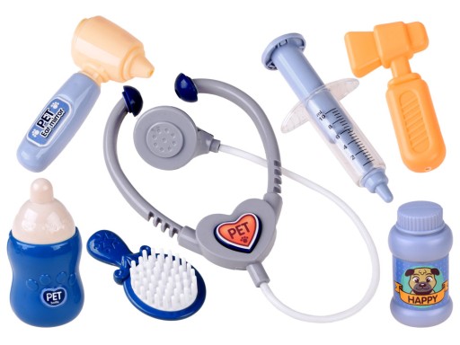 - Zestaw weterynarz z miniaturowym, karmelowym, uroczym pieskiem pudelkiem to zabawka dla każdego małego dziecka, które chce zostać weterynarzem. Zestaw wyposażony w przenośny pojemnik dla pieska i akcesoria medyczne dla weterynarza, sprosta wymaganiom małego weterynarza podczas udzielania pomocy medycznej. Nie od dziś wiadomo iż dziecko poprzez zabawę uczy się najwięcej, a taki zestaw zadba o to aby każdy mały właściciel dbał o swojego pupila.Zestaw zawiera:- interaktywny, pluszowy piesek- przenośny pojemnik/ koszyk z rączką - stetoskop- strzykawka- otoskop laryngologiczny- młoteczek neurologiczny- szczotka do czesania sierści- butelka do karmienia- imitacja pojemnika z lekamiFunkcje pieska:- pluszowy piesek w kolorze karmelowym z kręconym futerkiem, czarnymi oczkami i noskiem- piesek chodzi do przodu- szczeka- merda ogonkiem- głaszcząc po głowie pieska, piesek wydaje szczenięce piski- piesek zasilany jest 2 bateriami 1,5 V AA (brak w zestawie)Wymiary:- piesek 16 x 17 x 9 cm- transporter 24 x 18 x 20 cm
