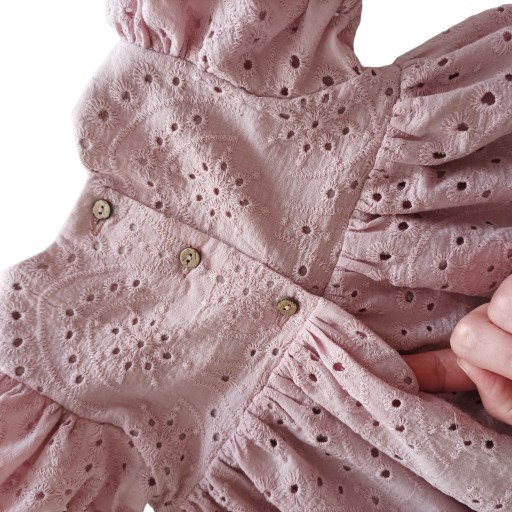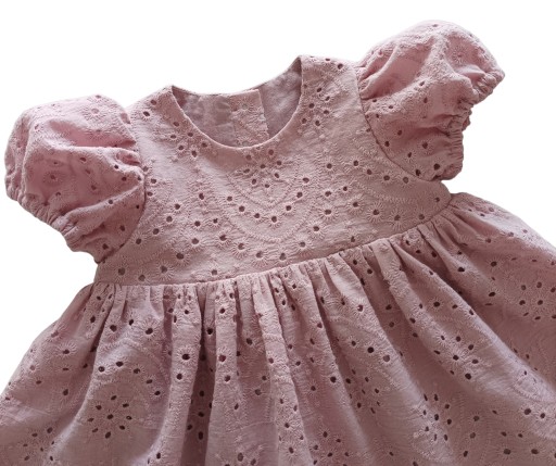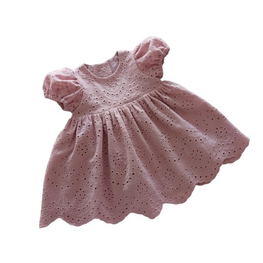 Sukienka "ALICJA" dla dziewczynki na chrzest ,roczek, wesele i inne uroczystości, odpowiednia na lato-tkaniny z których została wykonana to 100% bawełna haftowana z pięknym wykończeniem dołu sukienki. Kolor brudny róż- wrzos.