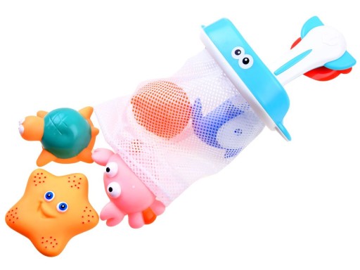 - Zestaw zapakowany w poręczną siateczkę. Sklep Jokomisiada oferuje szereg zabawek do kąpieli, zabawy w wodzie.