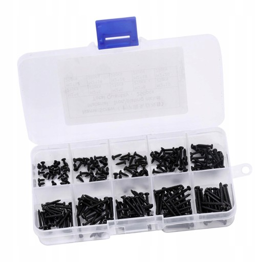 250 Sztuk Wkręt Samogwintujący M2 Zestaw Do Samodzielnego Wiercenia Śruby Samowiercące Zestaw Asortymentowy Czarny