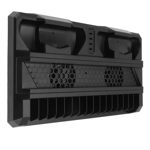 3. Przechowywanie dysków z grami: Stacja chłodząca konsoli do gier została zaprojektowana z uchwytem na dysk, który umożliwia schludne przechowywanie dysków z grami i utrzymanie porządku w przestrzeni do gier.