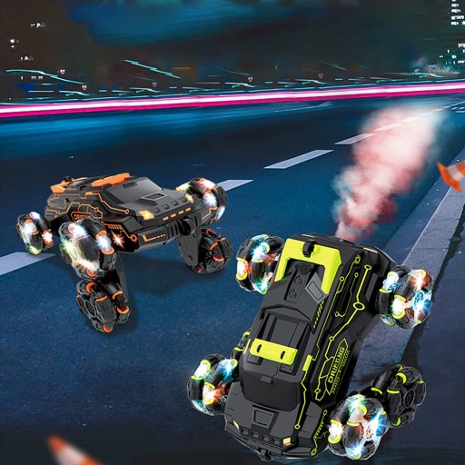 Dwufunkcyjny pilot: w jednym trybie połóż zegarek na dłoni i steruj samochodem kaskaderskim, zmieniając gesty dłoni, w drugim korzystasz z pilota, aby pozwolić samochodowi jechać tak, jak chcesz. Sześć gigantycznych antypoślizgowych kół połączonych sprężynami odpornymi na wstrząsy jest niesamowicie stabilnych, idealnych do specjalistycznych operacji, takich jak skręcanie, dryfowanie i przewracanie, zbudowanych z myślą o doskonałej obsłudze i kontroli. Zapewnia dzieciom i rodzicom niesamowitą zabawę RC.