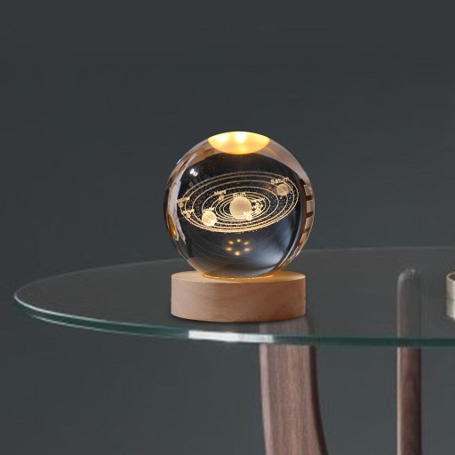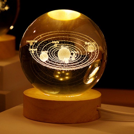 Planetarna lampka nocna z kryształowej kuli, nadrukowany wzór 3D, bardzo wyraźny.