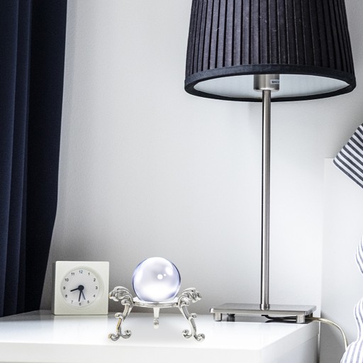 Сиденье из металлического хрустального шара поддерживает 3D-подставку для шаров.