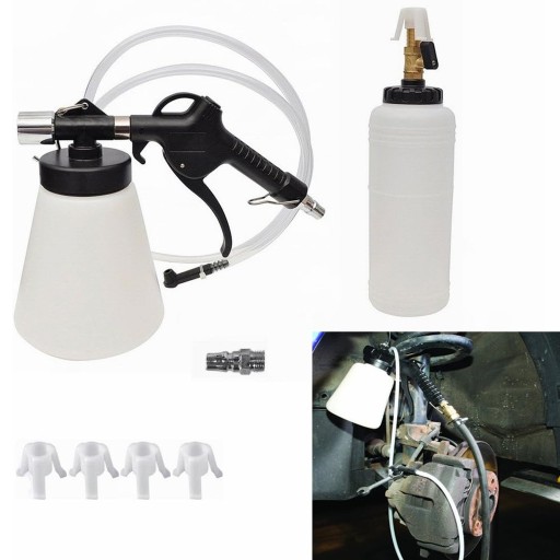 ➡️Przyrząd do wymiany płynu hamulcowego o pojemności 0,75l z magnesem, który unieruchamia pojemnik do napełniania płynem.